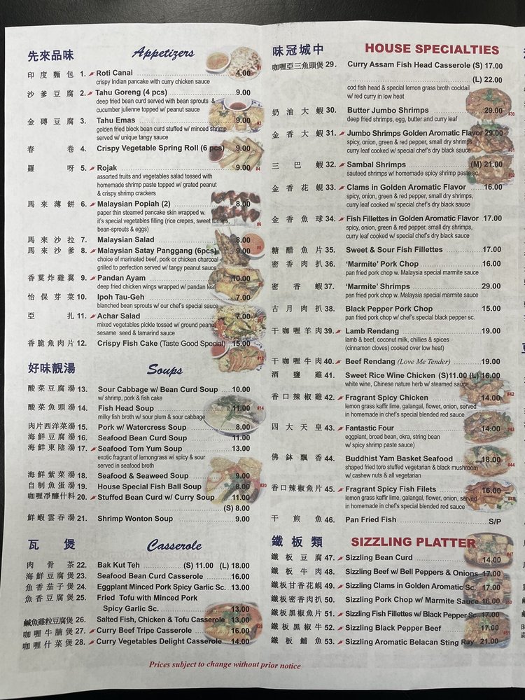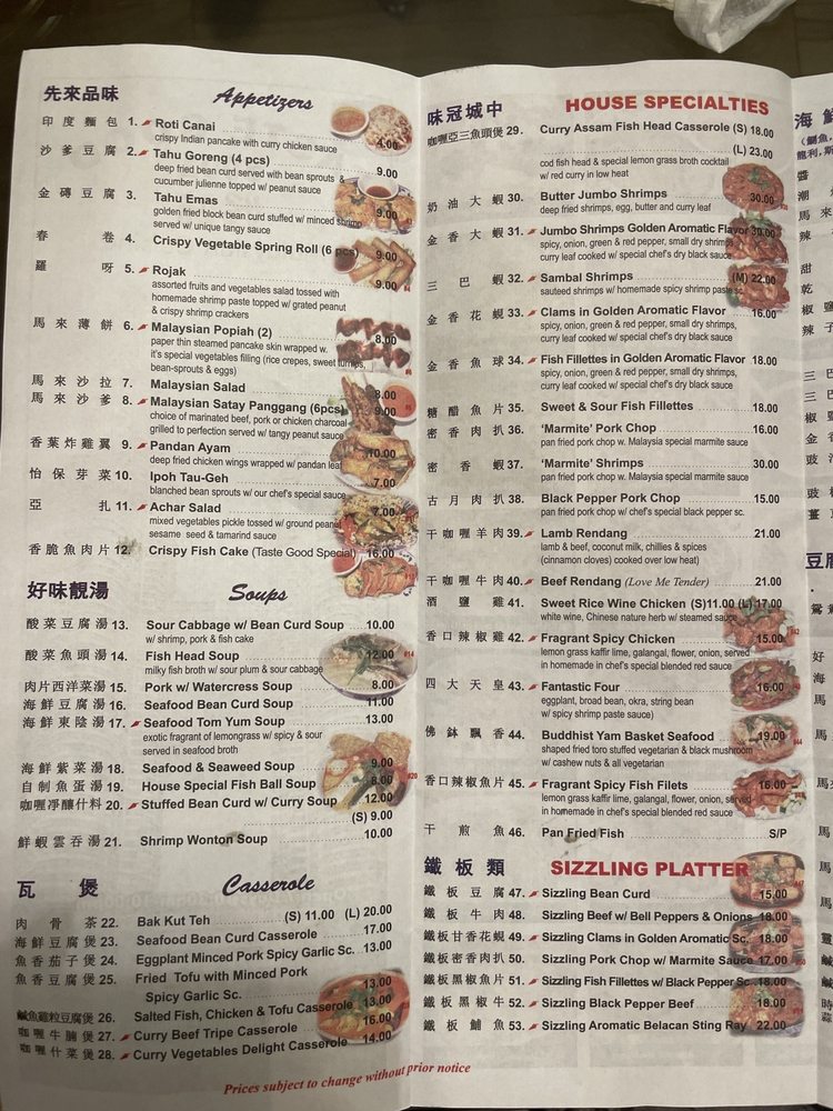 Taste Good Malaysian Cuisine Menu (Update 2025)